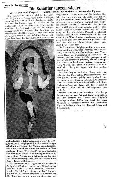 Das kommende Tanzjahr 2027 ist somit die zehnte Tanzsaison in der Stadt Traunstein, in der die Schäffler der Kolpingfamilie Traunstein ihren Tanz aufführen.